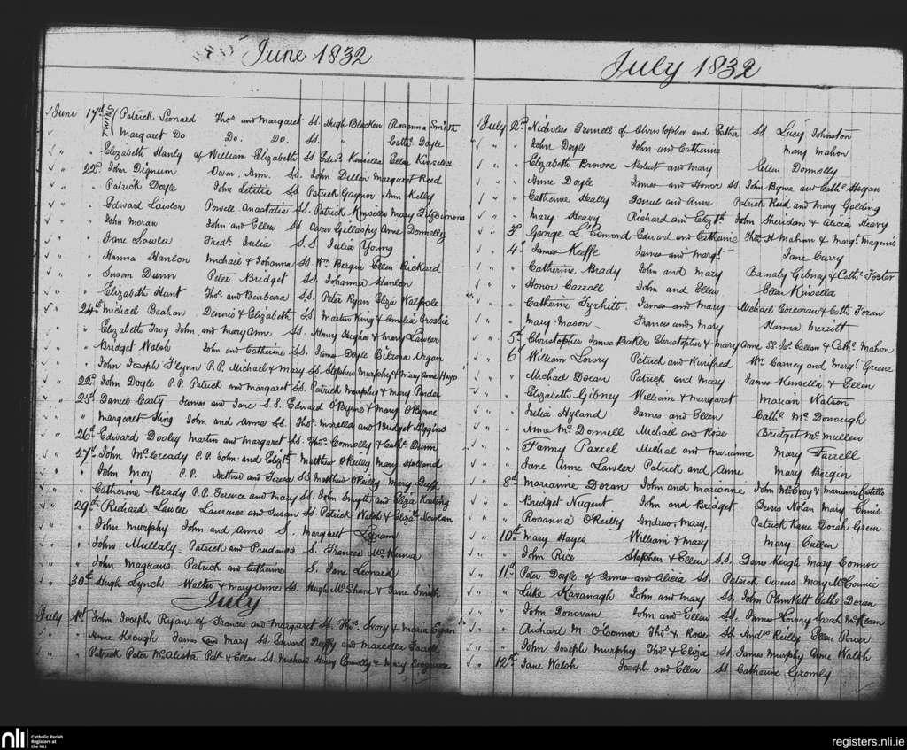 St. Andrew's, Dublin city; County of Dublin; Archdiocese of Dublin. Baptisms, June 1832 to July 1832