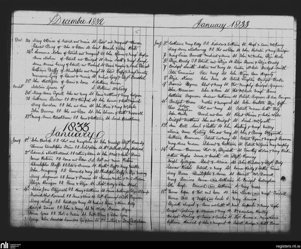 St. Andrew's, Dublin city; County of Dublin; Archdiocese of Dublin. Baptisms, Dec. 1832 to Jan. 1833