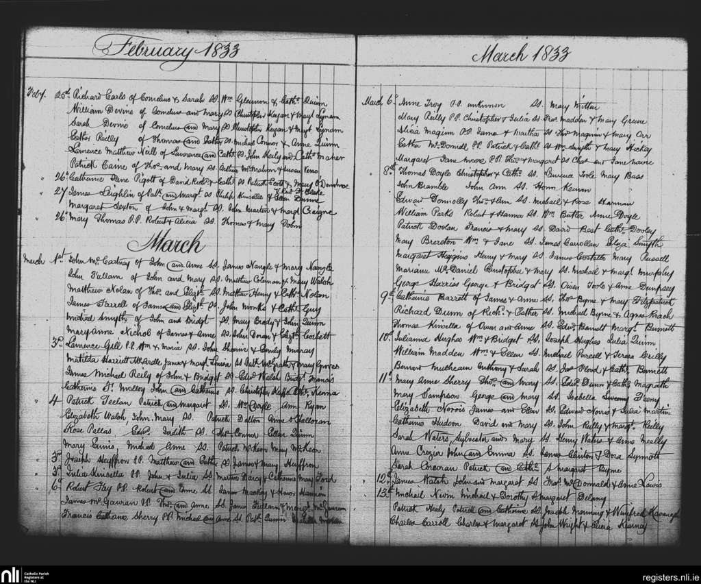 St. Andrew's, Dublin city; County of Dublin; Archdiocese of Dublin. Baptisms, Feb. 1833 to Mar. 1833