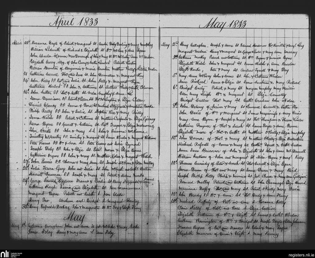 St. Andrew's, Dublin city; County of Dublin; Archdiocese of Dublin. Baptisms, Apr. 1833 to May 1833