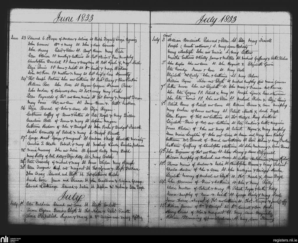 St. Andrew's, Dublin city; County of Dublin; Archdiocese of Dublin. Baptisms, June 1833 to July 1833