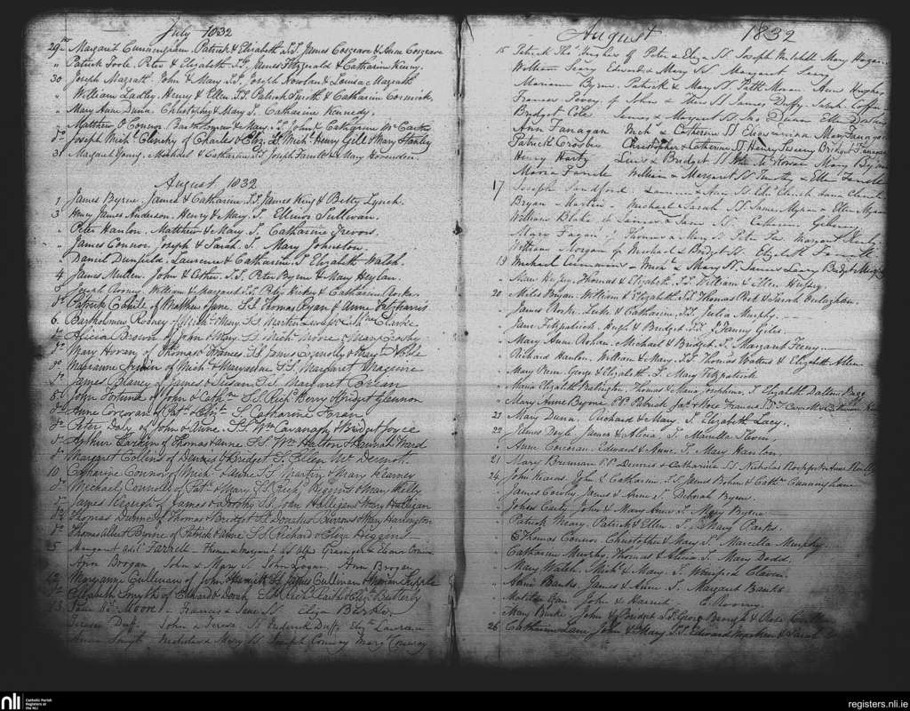 St. Andrew's, Dublin city; County of Dublin; Archdiocese of Dublin. Baptisms, July 1832 to Aug. 1832