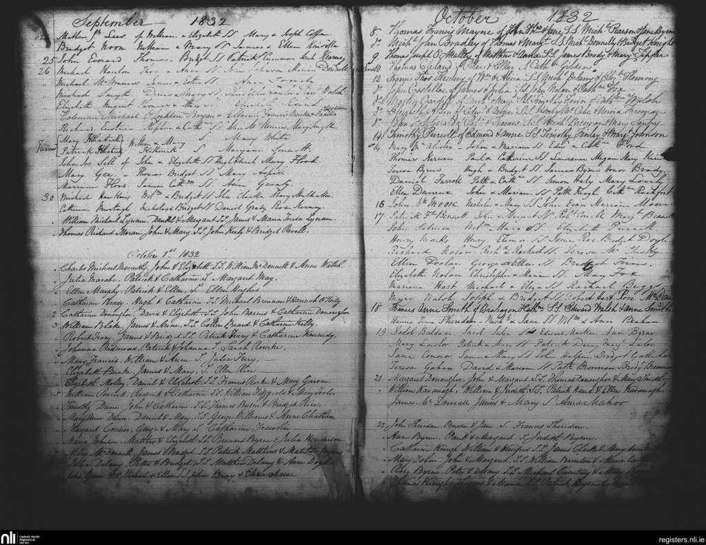 St. Andrew's, Dublin city; County of Dublin; Archdiocese of Dublin. Baptisms, Sep. 1832 to Oct. 1832