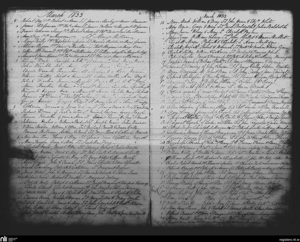 St. Andrew's, Dublin city; County of Dublin; Archdiocese of Dublin. Baptisms, Mar. 1833