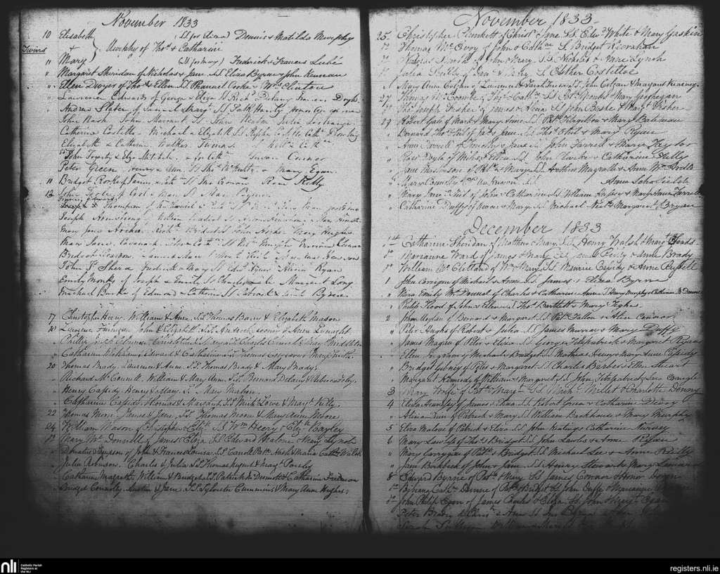 St. Andrew's, Dublin city; County of Dublin; Archdiocese of Dublin. Baptisms, Nov. 1833 to Dec. 1833