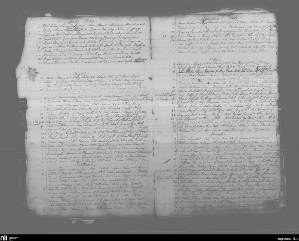 St. Andrew's, Dublin city; County of Dublin; Archdiocese of Dublin. Marriages, July 1839 to Nov. 1839