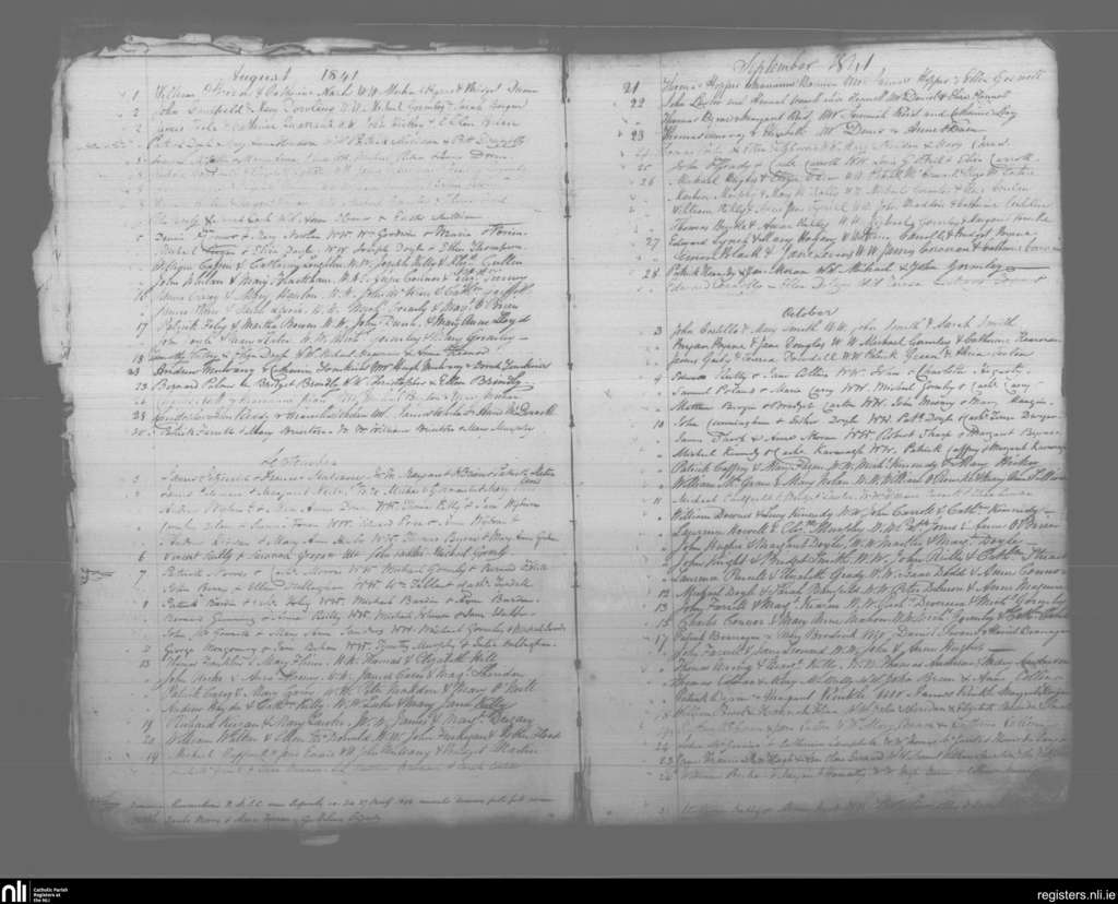 St. Andrew's, Dublin city; County of Dublin; Archdiocese of Dublin. Marriages, Aug. 1841 to Oct. 1841