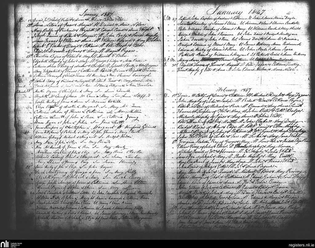 St. Andrew's, Dublin city; County of Dublin; Archdiocese of Dublin. Baptisms, Jan. 1847 to Feb. 1847