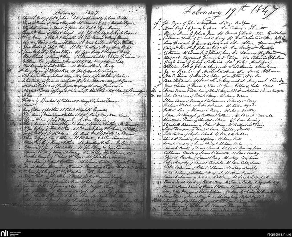 St. Andrew's, Dublin city; County of Dublin; Archdiocese of Dublin. Baptisms, Feb. 1847