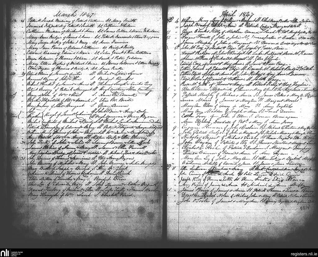 St. Andrew's, Dublin city; County of Dublin; Archdiocese of Dublin. Baptisms, Mar. 1847 to Apr. 1847