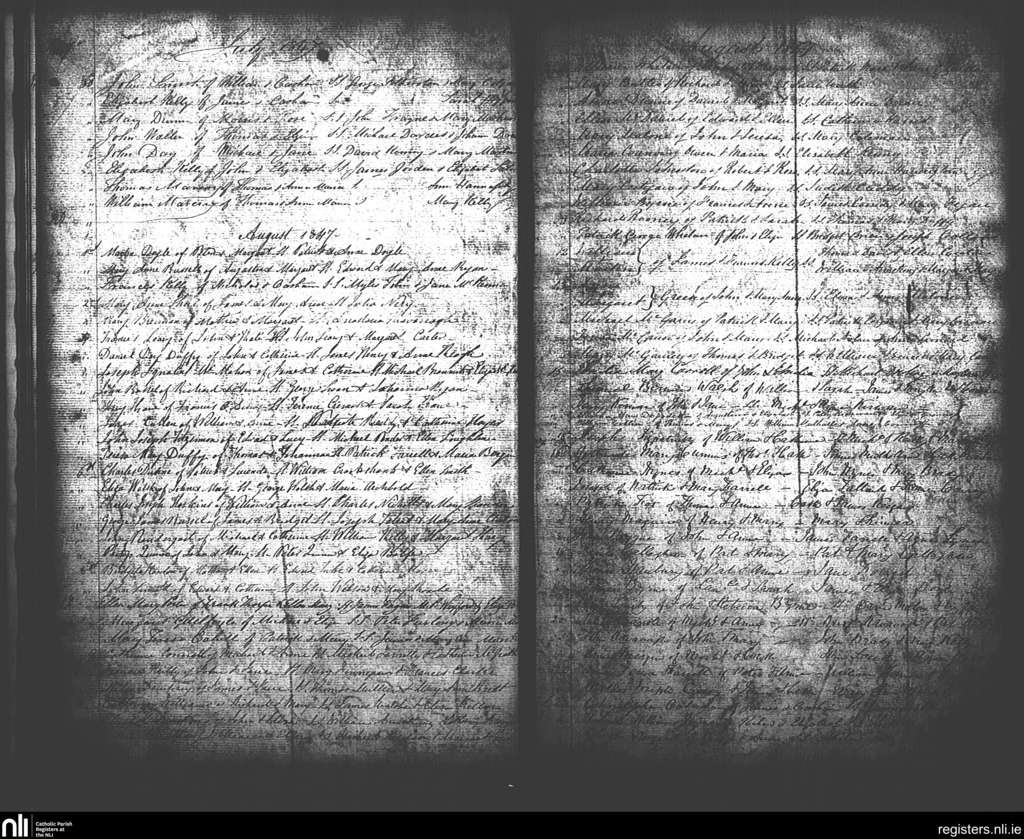 St. Andrew's, Dublin city; County of Dublin; Archdiocese of Dublin. Baptisms, July 1847 to Aug. 1847