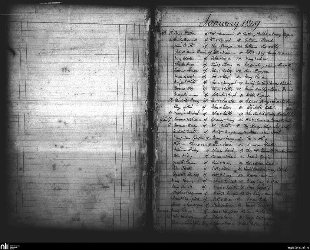 St. Andrew's, Dublin city; County of Dublin; Archdiocese of Dublin. Baptisms, Jan. 1849