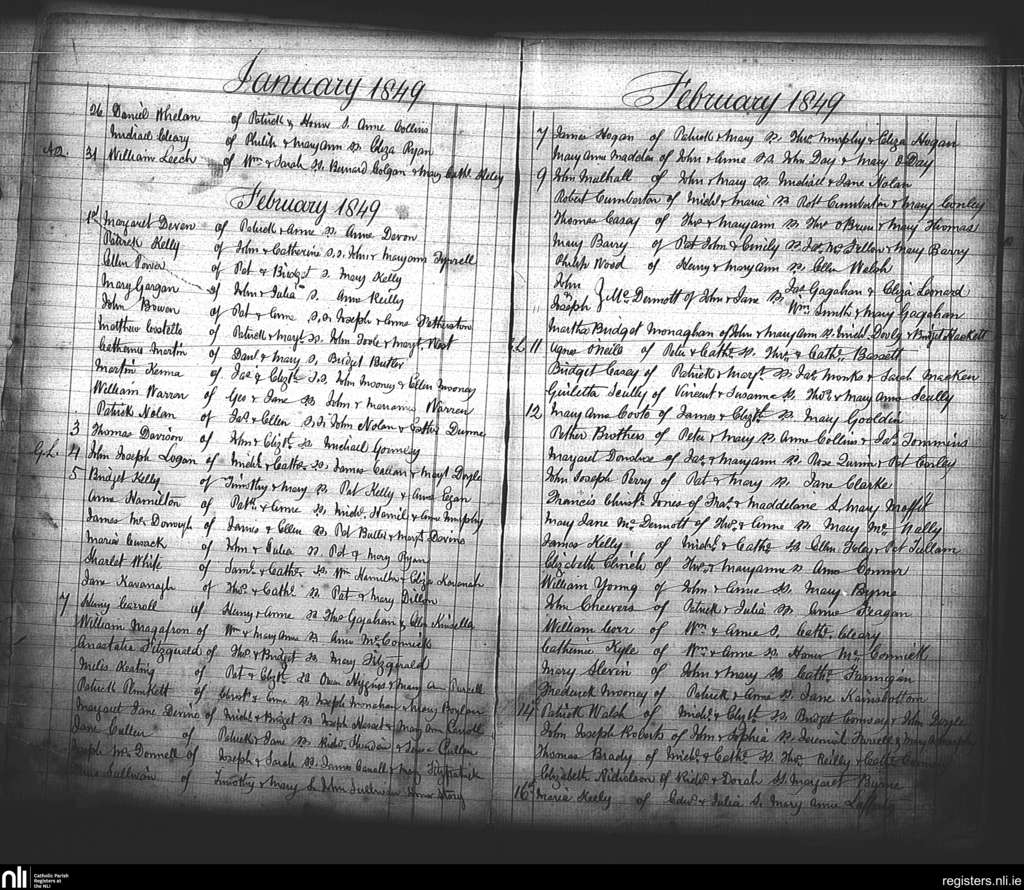 St. Andrew's, Dublin city; County of Dublin; Archdiocese of Dublin. Baptisms, Jan. 1849 to Feb. 1849