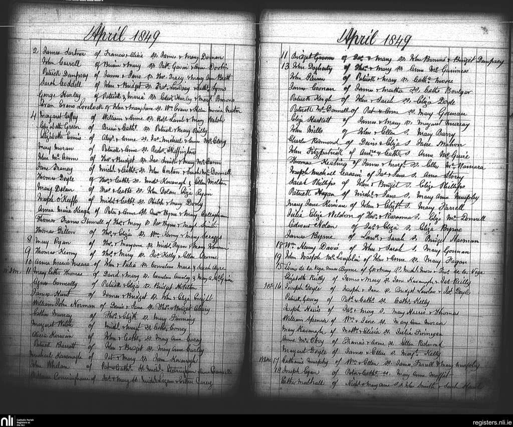 St. Andrew's, Dublin city; County of Dublin; Archdiocese of Dublin. Baptisms, Apr. 1849