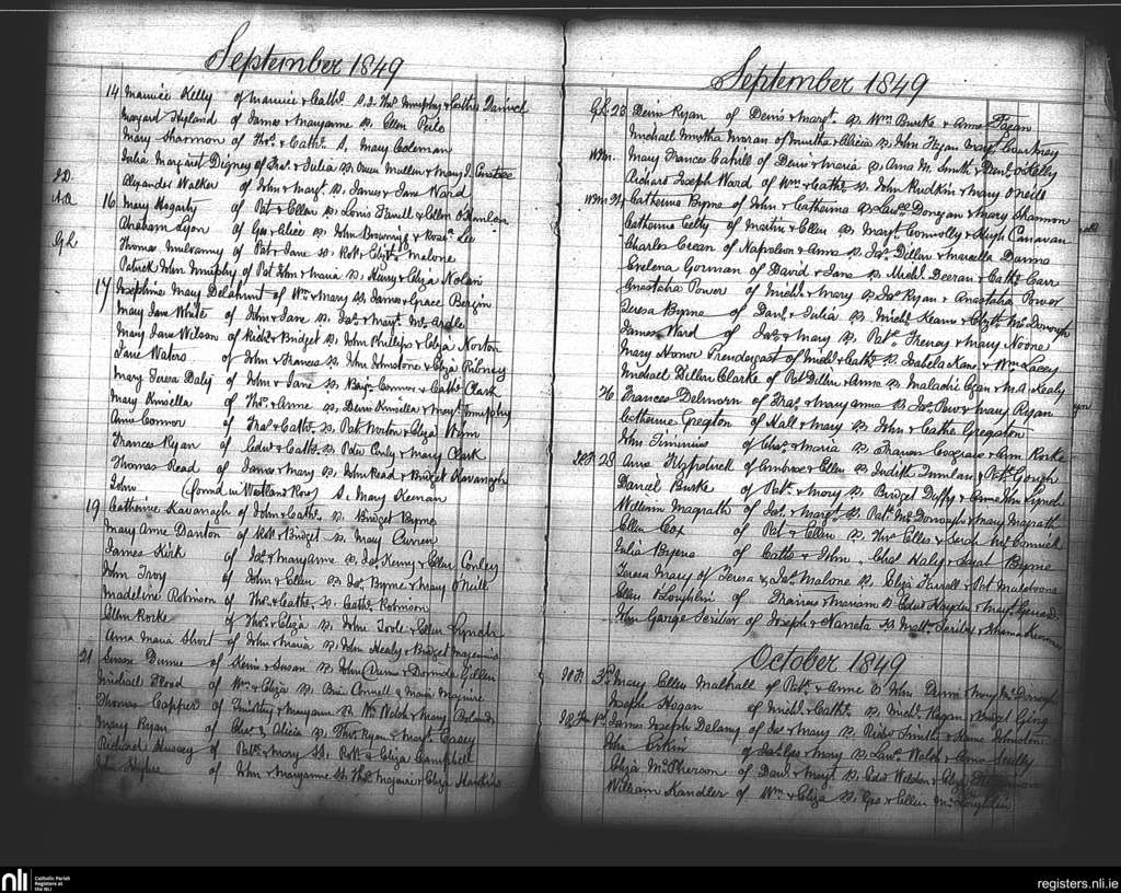 St. Andrew's, Dublin city; County of Dublin; Archdiocese of Dublin. Baptisms, Sep. 1849 to Oct. 1849