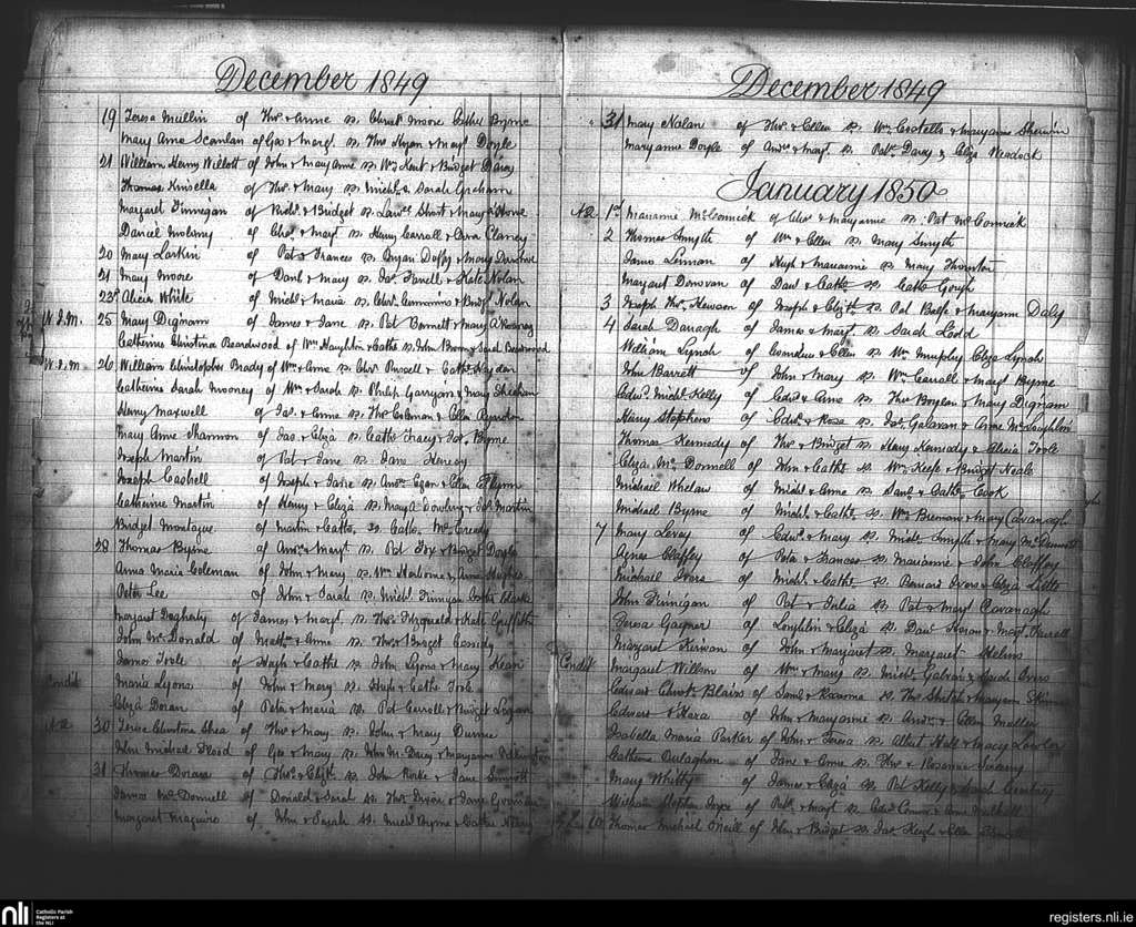St. Andrew's, Dublin city; County of Dublin; Archdiocese of Dublin. Baptisms, Dec. 1849 to Jan. 1850