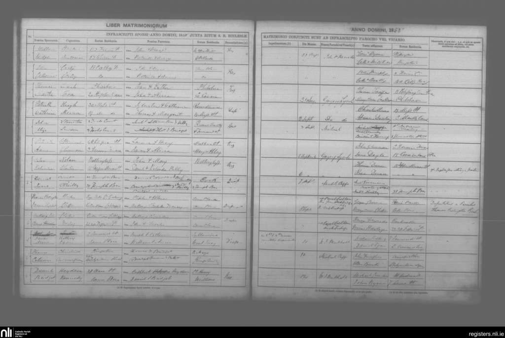 St. Andrew's, Dublin city; County of Dublin; Archdiocese of Dublin. Marriages, Aug. 1858 to Sep. 1858