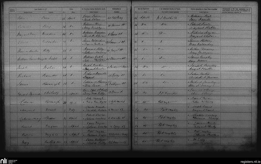 St. Andrew's, Dublin city; County of Dublin; Archdiocese of Dublin. Baptisms, Apr. 1858