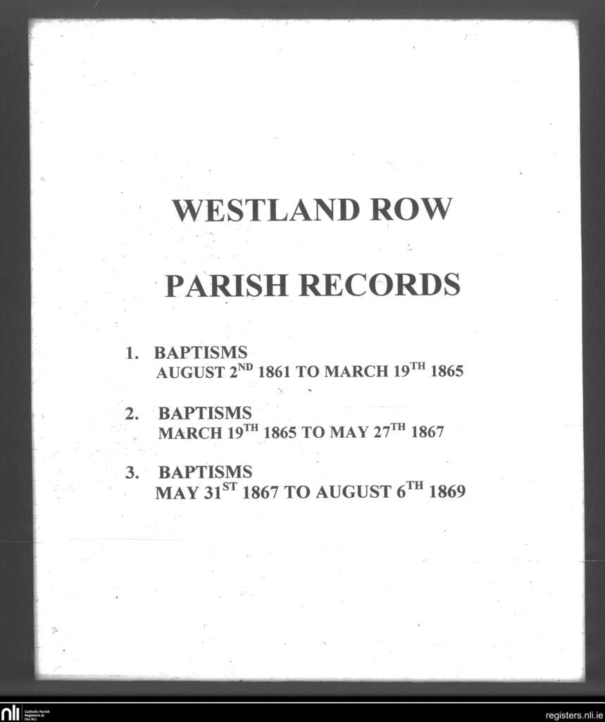 St. Andrew's, Dublin city; County of Dublin; Archdiocese of Dublin. Baptisms