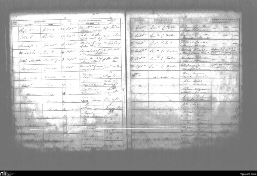 St. Andrew's, Dublin city; County of Dublin; Archdiocese of Dublin. Baptisms, Sep. 1861