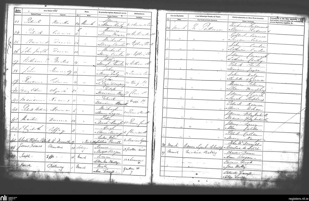 St. Andrew's, Dublin city; County of Dublin; Archdiocese of Dublin. Baptisms, Mar. 1865