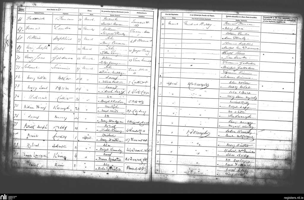 St. Andrew's, Dublin city; County of Dublin; Archdiocese of Dublin. Baptisms, Mar. 1865 to Apr. 1865