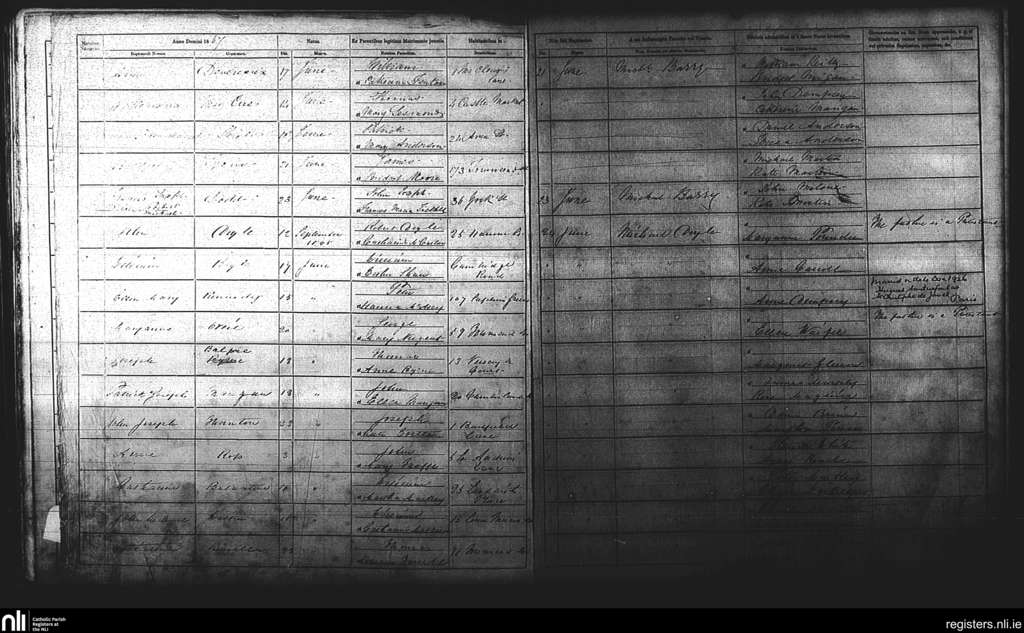 St. Andrew's, Dublin city; County of Dublin; Archdiocese of Dublin. Baptisms, June 1867