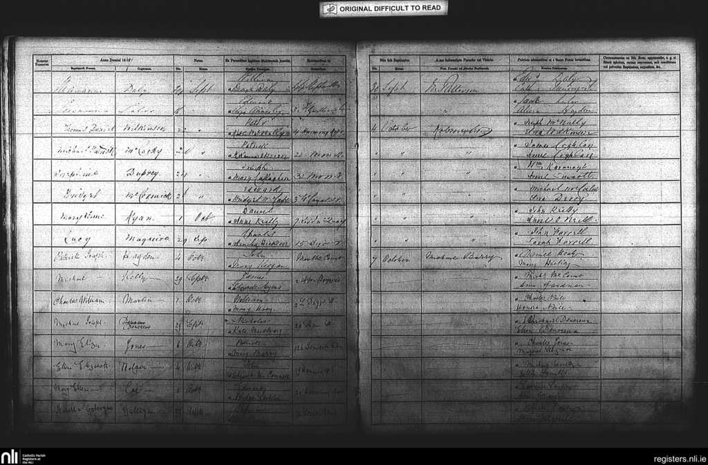 St. Andrew's, Dublin city; County of Dublin; Archdiocese of Dublin. Baptisms, Sep. 1867 to Oct. 1867