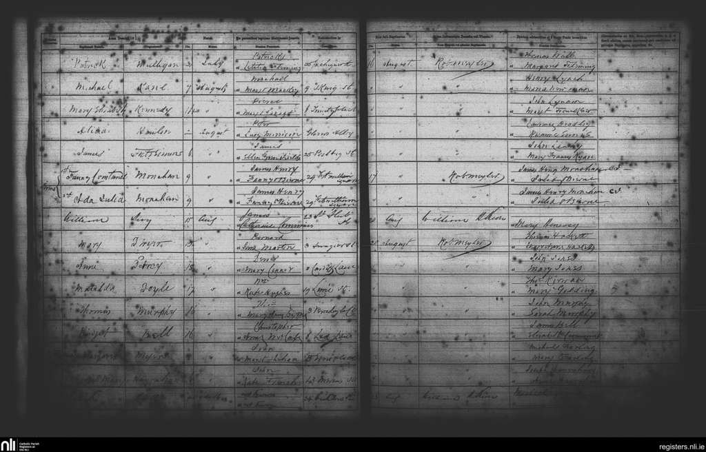 St. Andrew's, Dublin city; County of Dublin; Archdiocese of Dublin. Baptisms, Aug. 1869