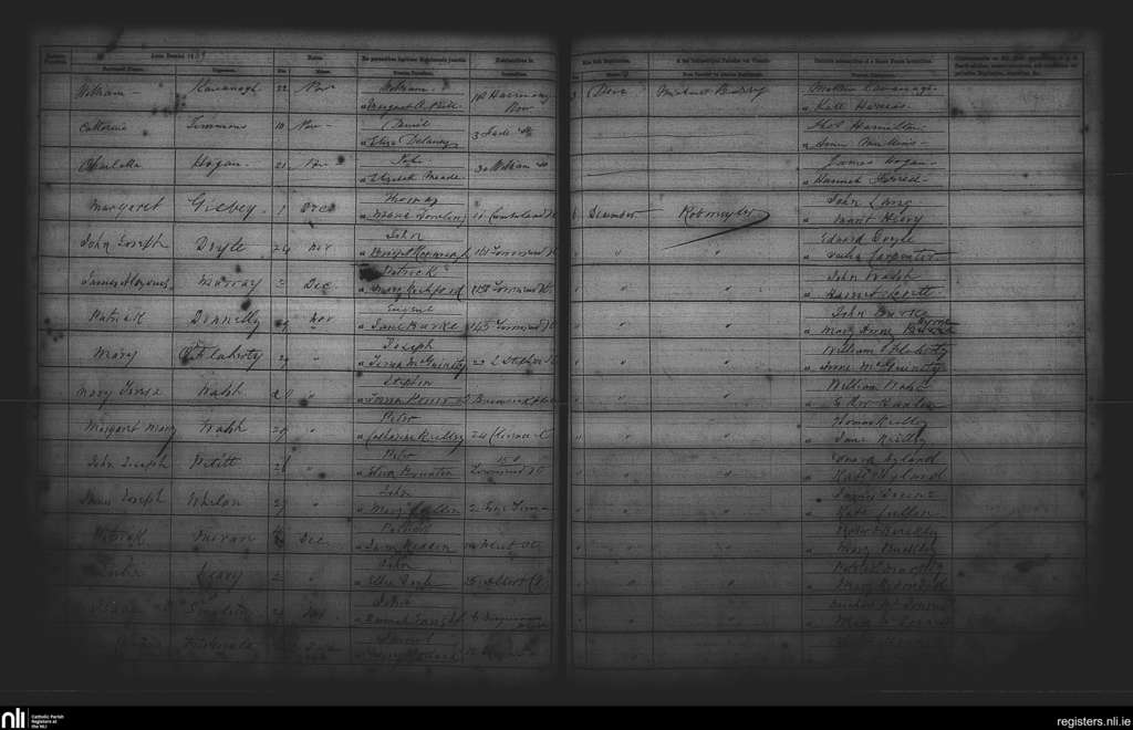 St. Andrew's, Dublin city; County of Dublin; Archdiocese of Dublin. Baptisms, Dec. 1869