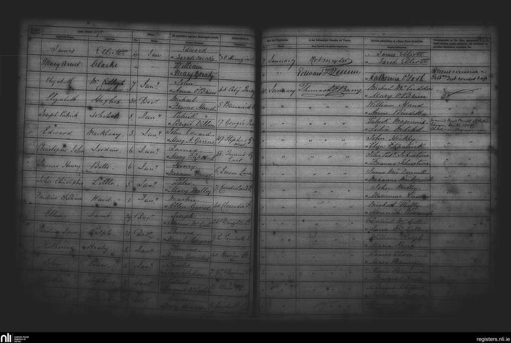 St. Andrew's, Dublin city; County of Dublin; Archdiocese of Dublin. Baptisms, Jan. 1870