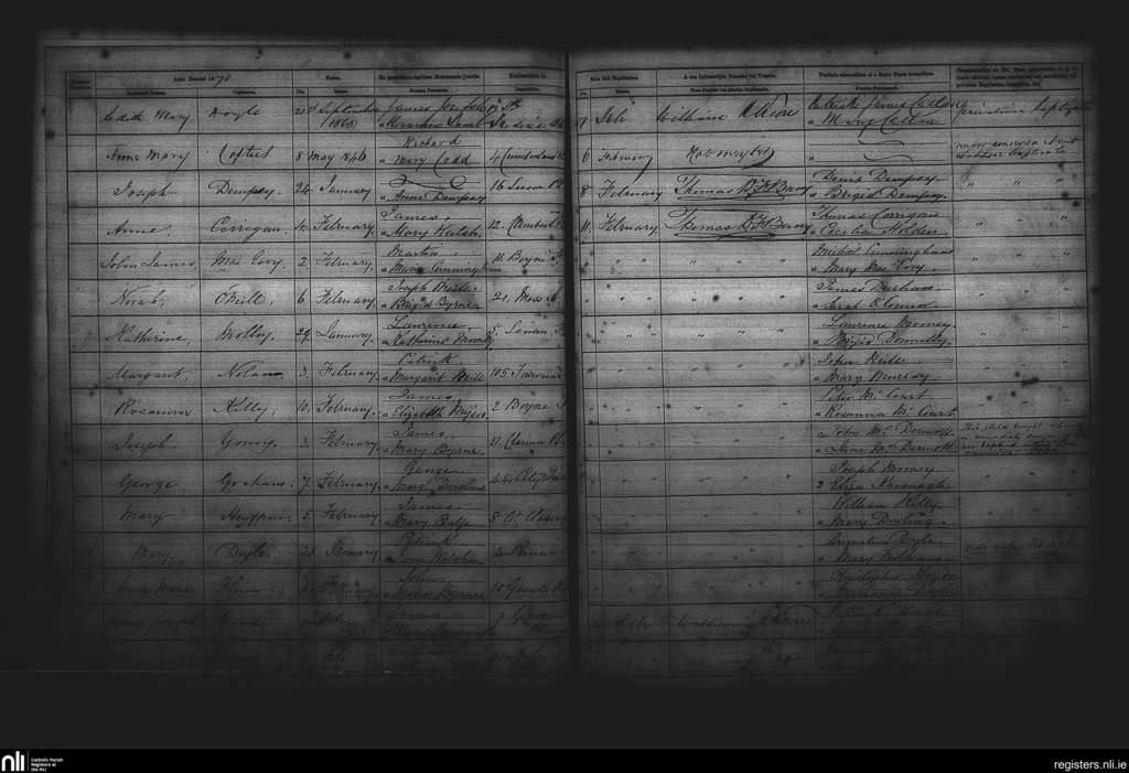 St. Andrew's, Dublin city; County of Dublin; Archdiocese of Dublin. Baptisms, Feb. 1870