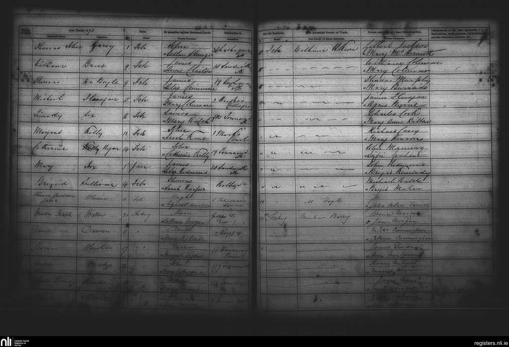 St. Andrew's, Dublin city; County of Dublin; Archdiocese of Dublin. Baptisms, Feb. 1870
