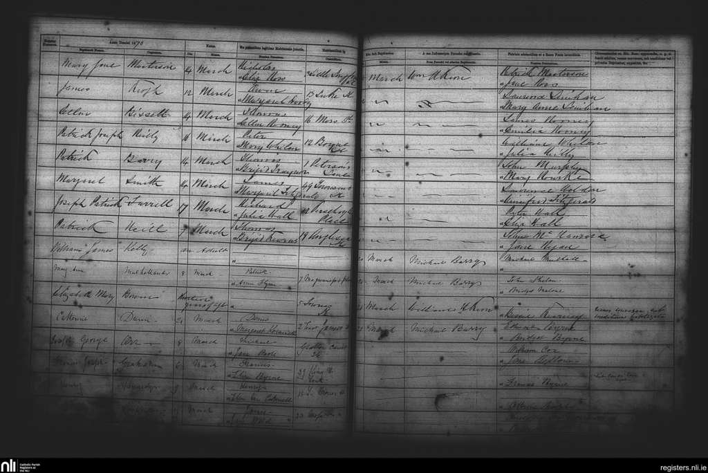 St. Andrew's, Dublin city; County of Dublin; Archdiocese of Dublin. Baptisms, Mar. 1870