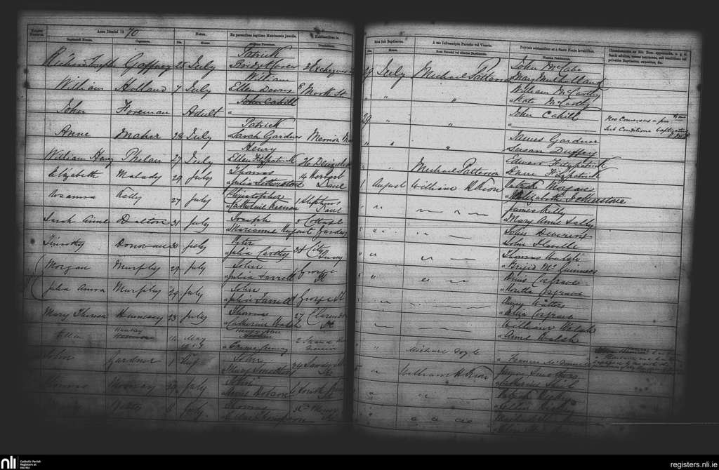 St. Andrew's, Dublin city; County of Dublin; Archdiocese of Dublin. Baptisms, July 1870 to Aug. 1870