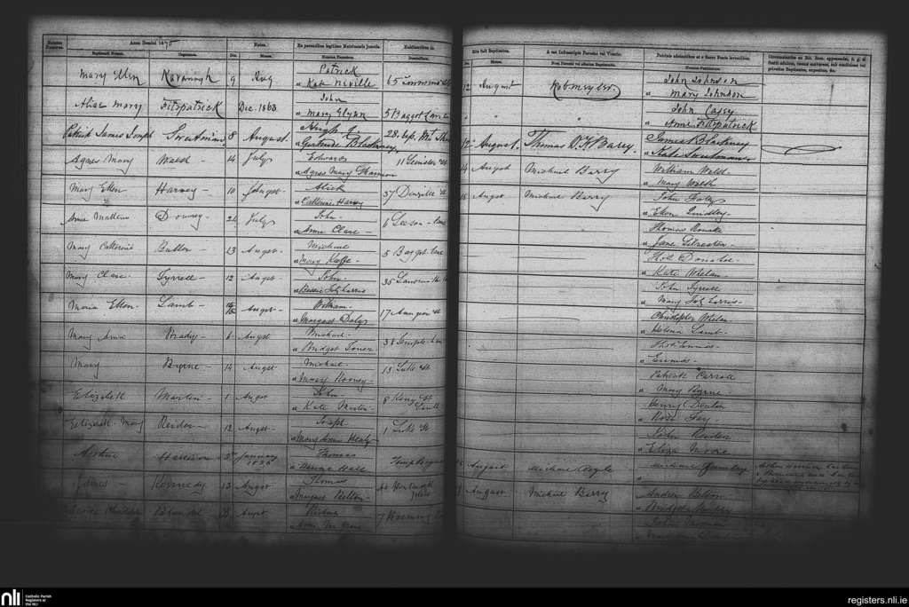 St. Andrew's, Dublin city; County of Dublin; Archdiocese of Dublin. Baptisms, Aug. 1870
