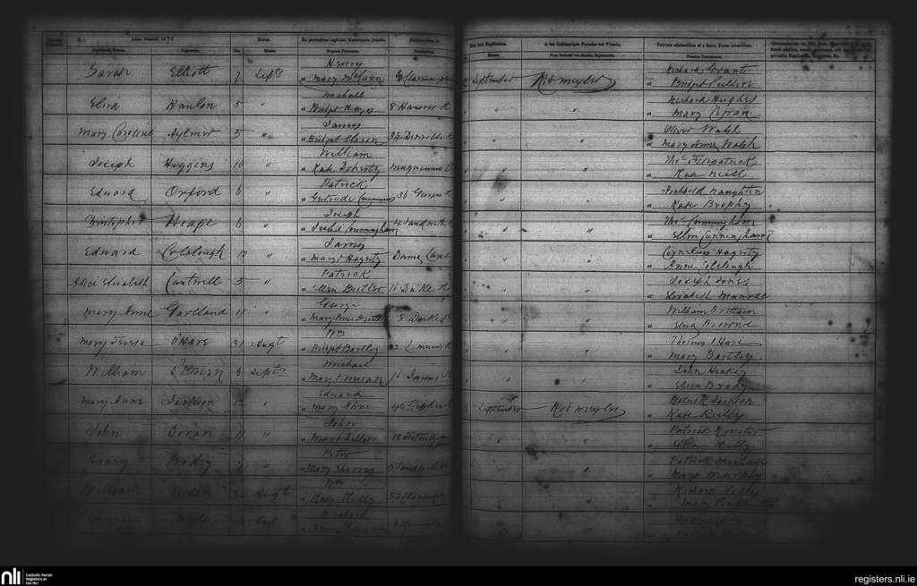 St. Andrew's, Dublin city; County of Dublin; Archdiocese of Dublin. Baptisms, Sep. 1870