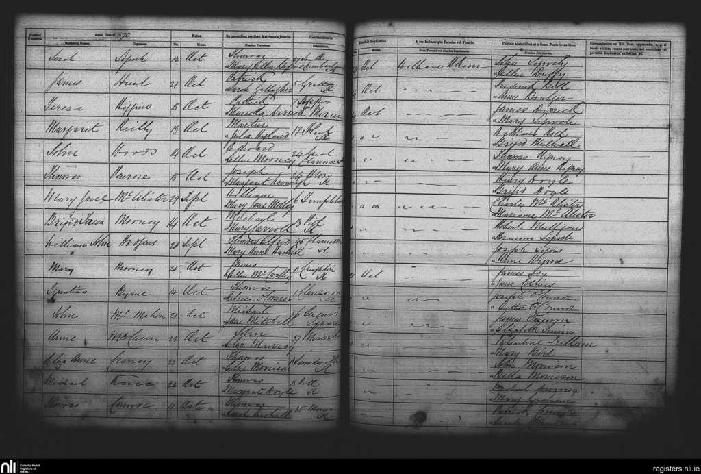 St. Andrew's, Dublin city; County of Dublin; Archdiocese of Dublin. Baptisms, Oct. 1870