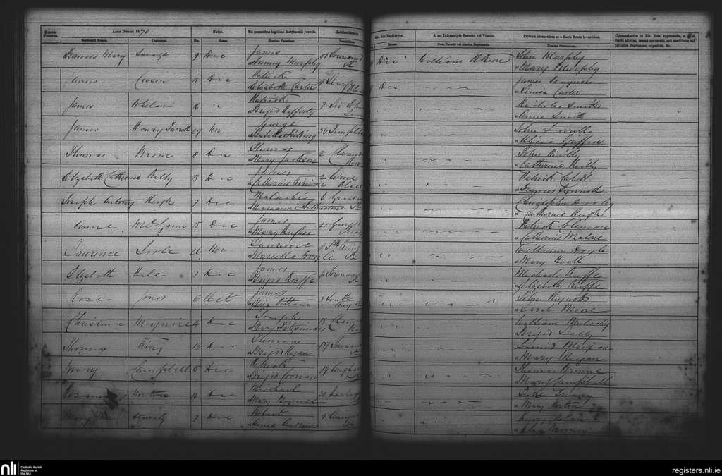 St. Andrew's, Dublin city; County of Dublin; Archdiocese of Dublin. Baptisms, Dec. 1870