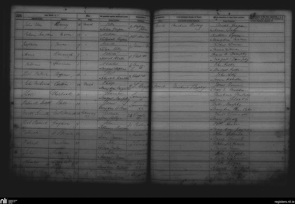 St. Andrew's, Dublin city; County of Dublin; Archdiocese of Dublin. Baptisms, Mar. 1871