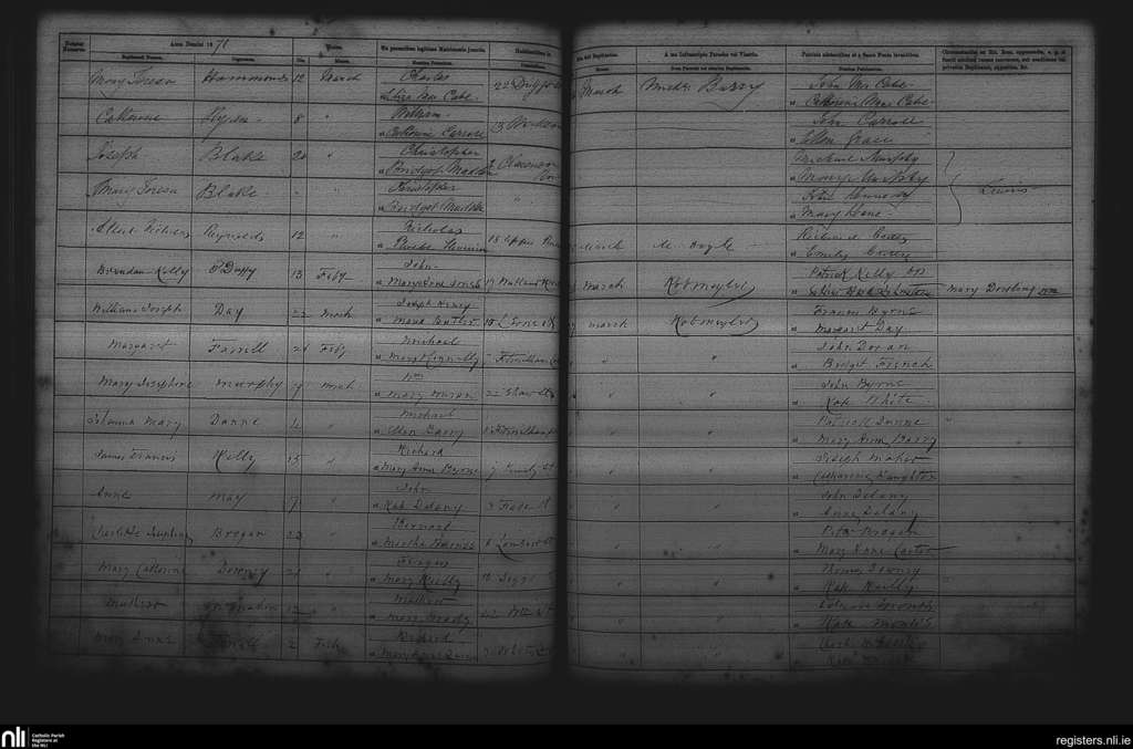 St. Andrew's, Dublin city; County of Dublin; Archdiocese of Dublin. Baptisms, Mar. 1871