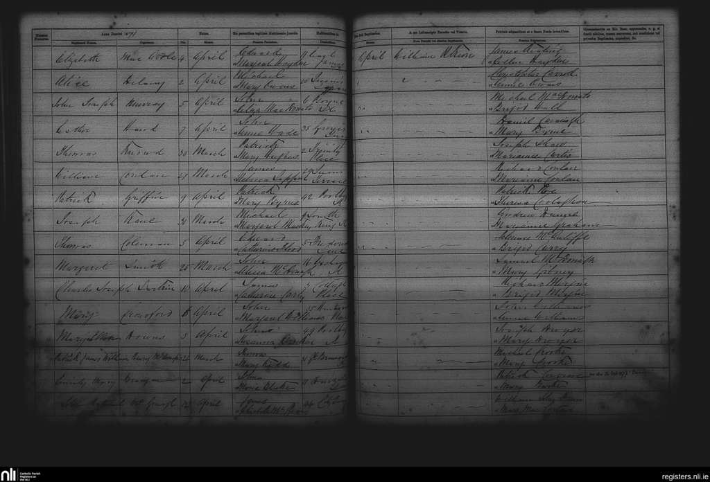 St. Andrew's, Dublin city; County of Dublin; Archdiocese of Dublin. Baptisms, Apr. 1871