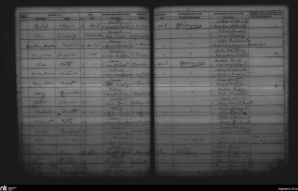 St. Andrew's, Dublin city; County of Dublin; Archdiocese of Dublin. Baptisms, Apr. 1871 to May 1871