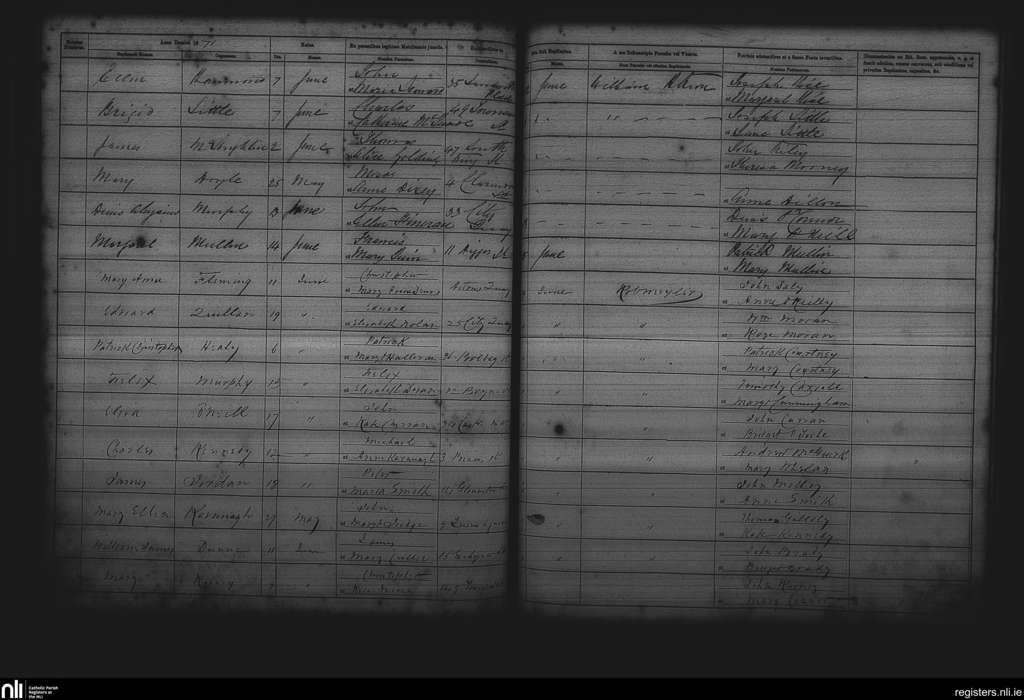 St. Andrew's, Dublin city; County of Dublin; Archdiocese of Dublin. Baptisms, June 1871