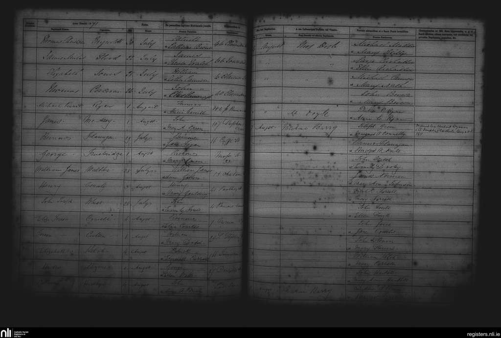 St. Andrew's, Dublin city; County of Dublin; Archdiocese of Dublin. Baptisms, Aug. 1871