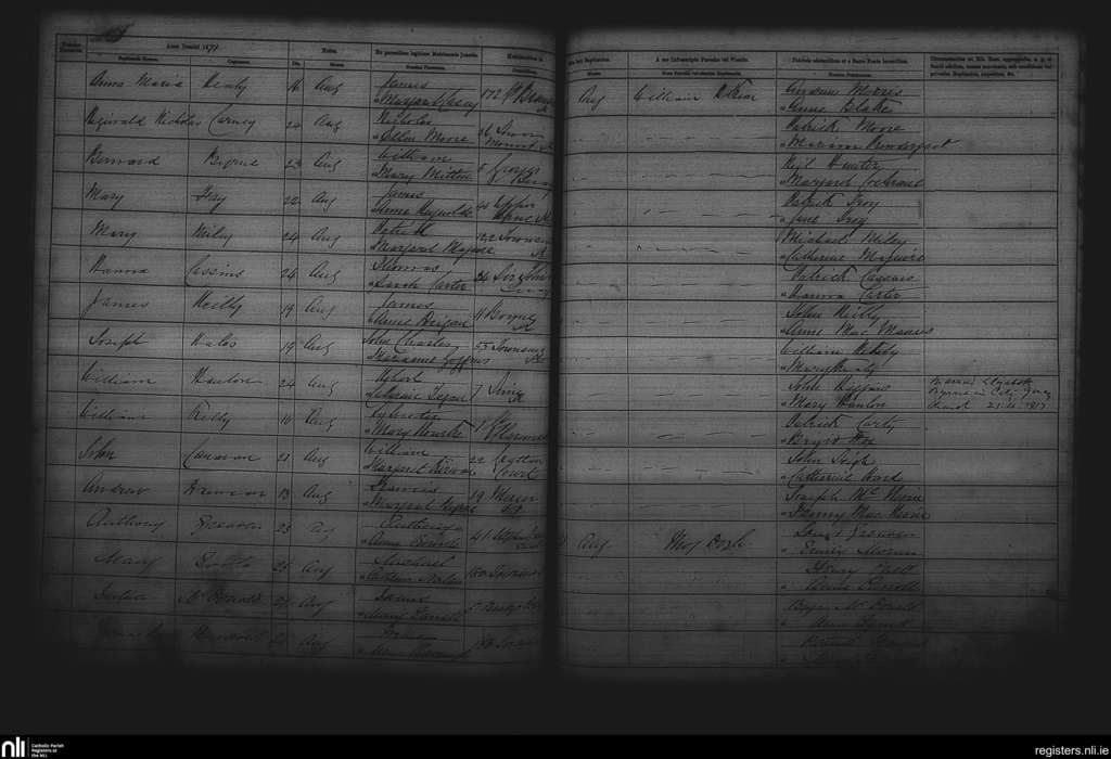 St. Andrew's, Dublin city; County of Dublin; Archdiocese of Dublin. Baptisms, Aug. 1871