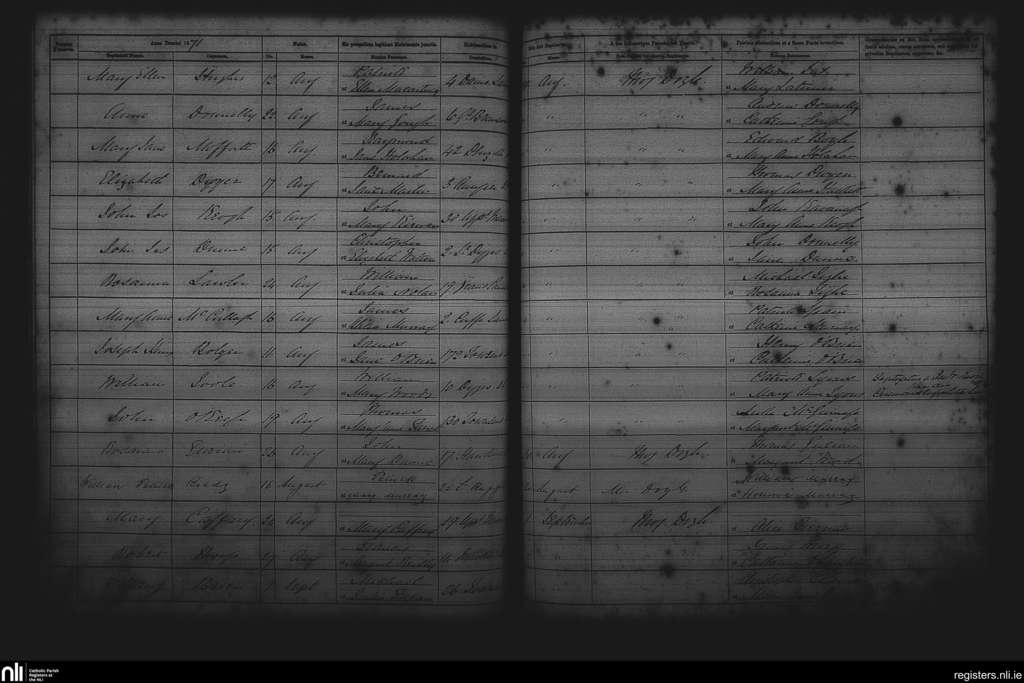St. Andrew's, Dublin city; County of Dublin; Archdiocese of Dublin. Baptisms, Aug. 1871 to Sep. 1871