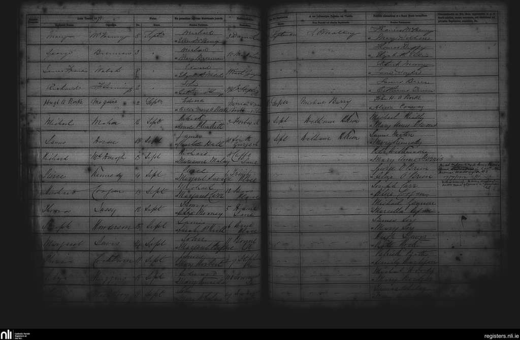 St. Andrew's, Dublin city; County of Dublin; Archdiocese of Dublin. Baptisms, Sep. 1871
