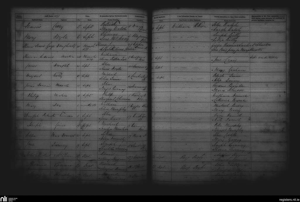 St. Andrew's, Dublin city; County of Dublin; Archdiocese of Dublin. Baptisms, Sep. 1871