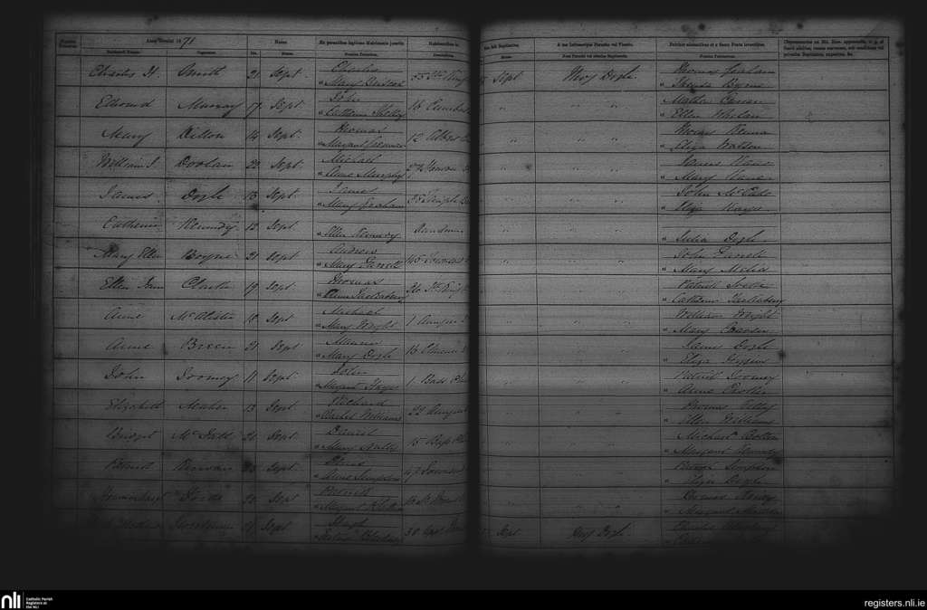 St. Andrew's, Dublin city; County of Dublin; Archdiocese of Dublin. Baptisms, Sep. 1871